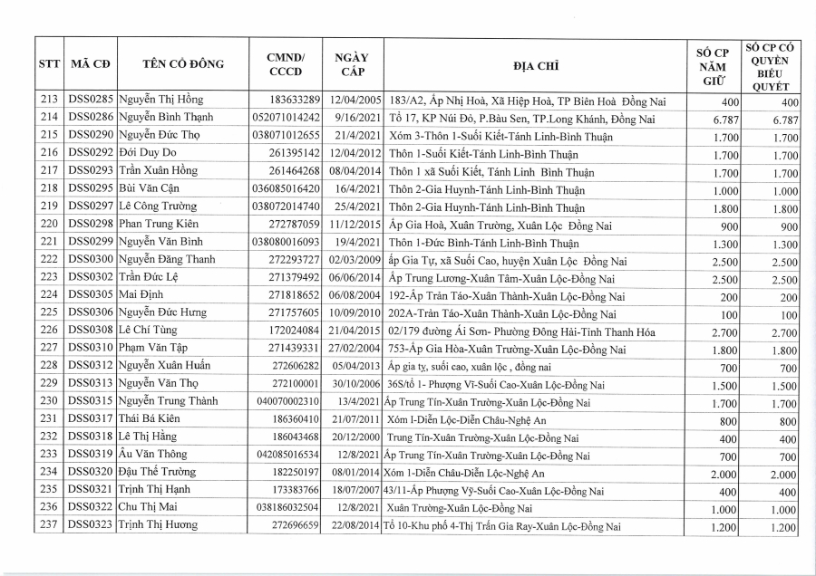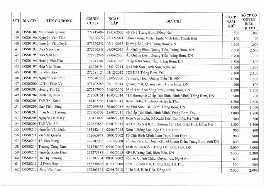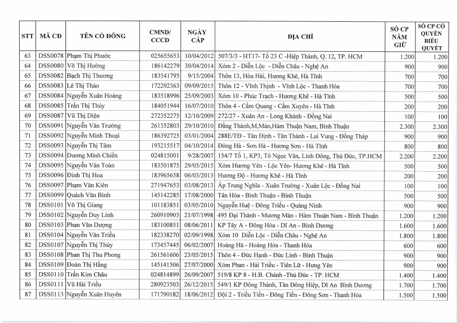 Danh sách tổng hợp người sở hữu chứng khoán có quyền tham dự họp ĐHĐCĐ năm 2026