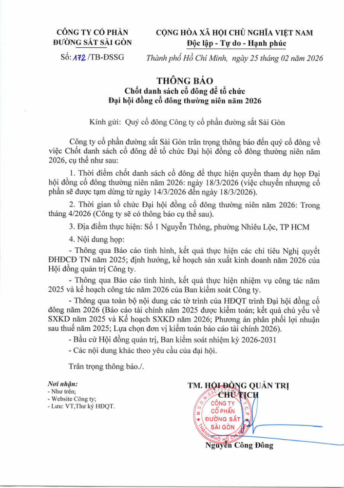 Quyết định về việc ban hành Điều lệ tổ chức và hoạt động của Công ty Cổ phần Đường sắt Sài Gòn