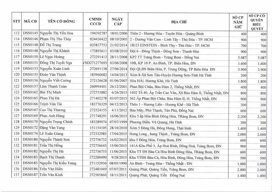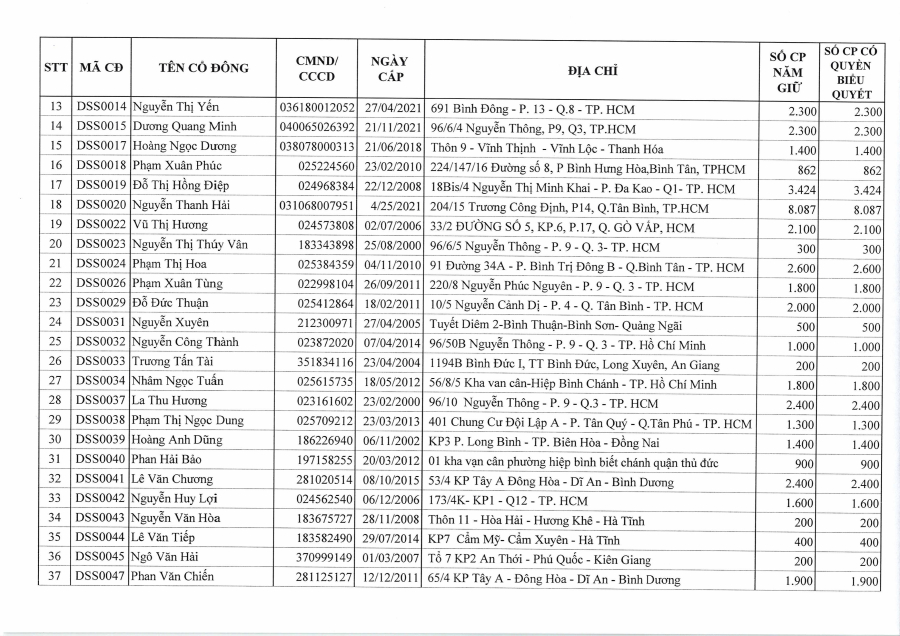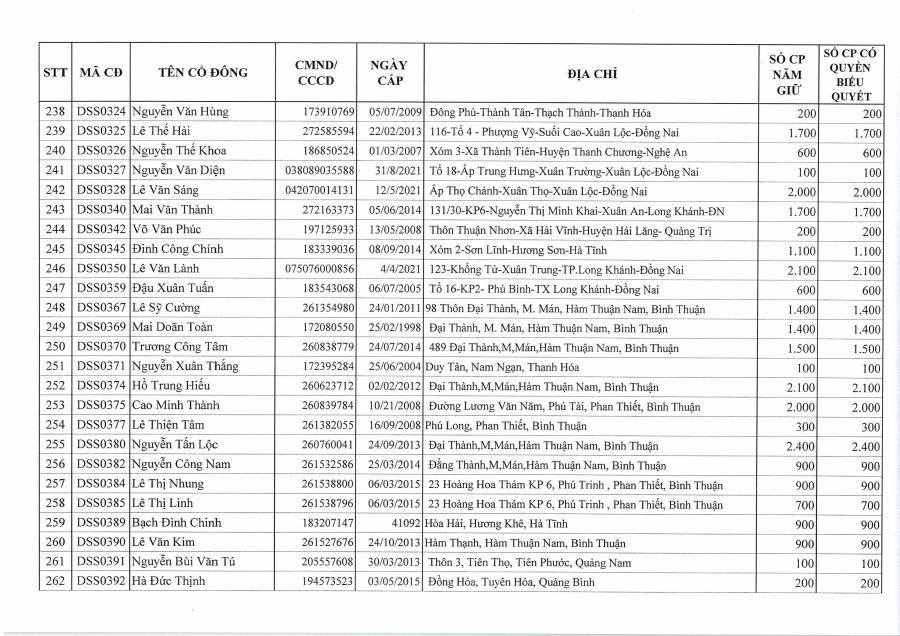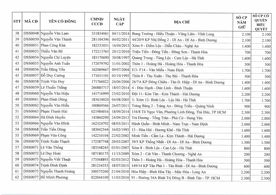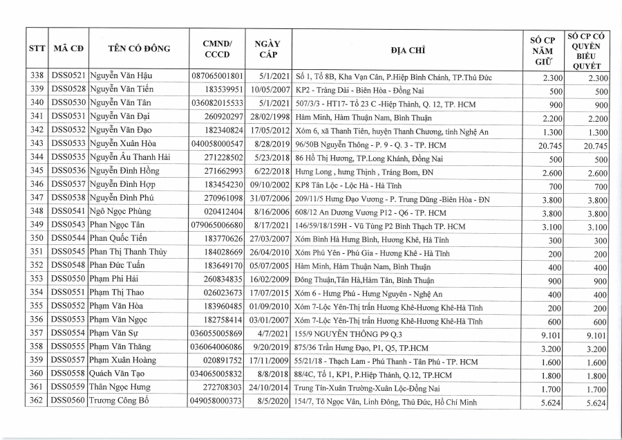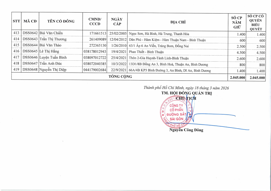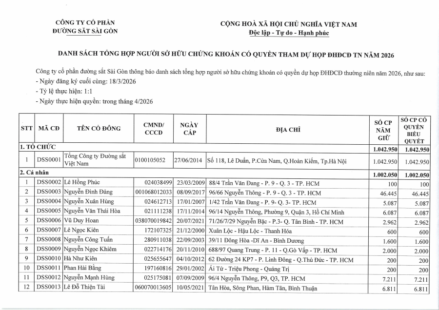 Danh sách tổng hợp người sở hữu chứng khoán có quyền tham dự họp ĐHĐCĐ năm 2026